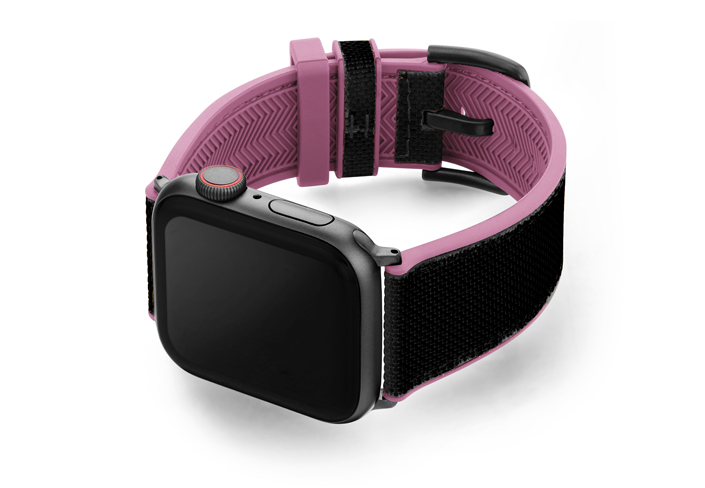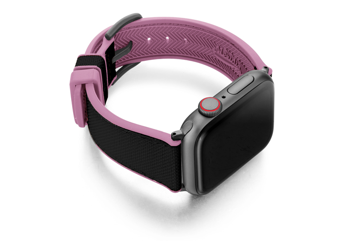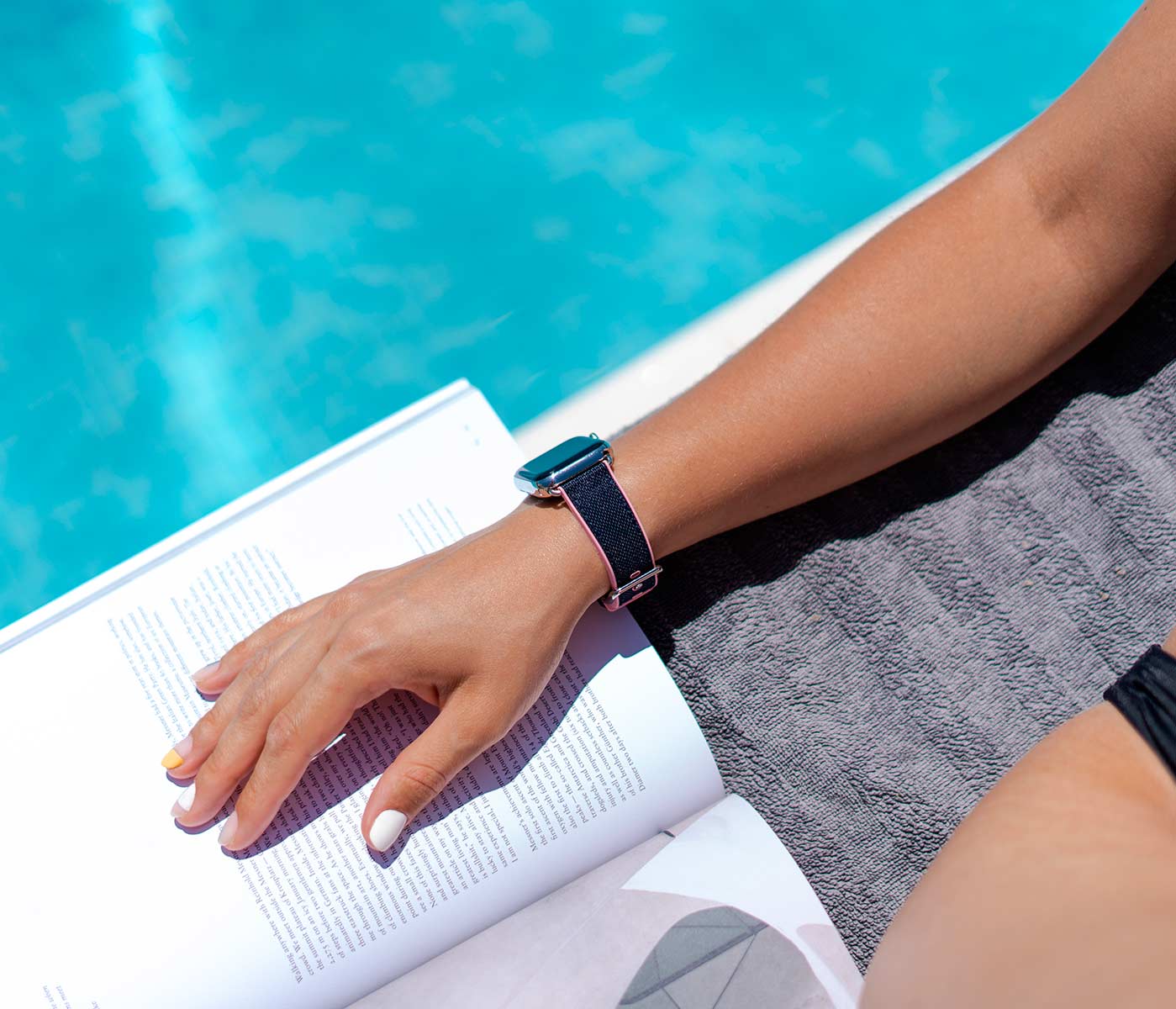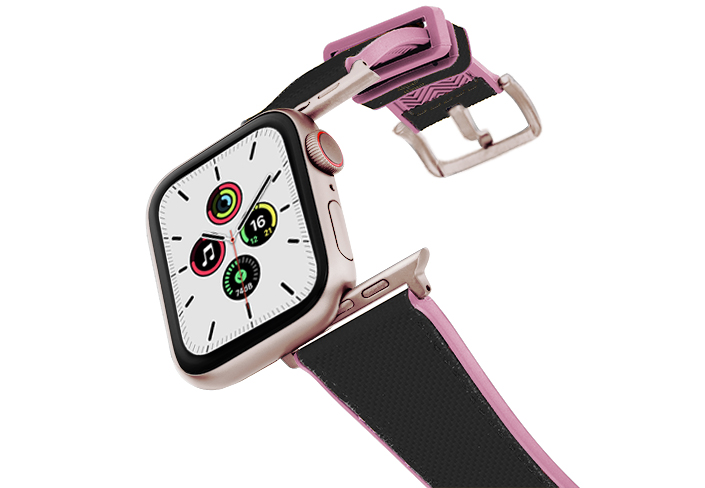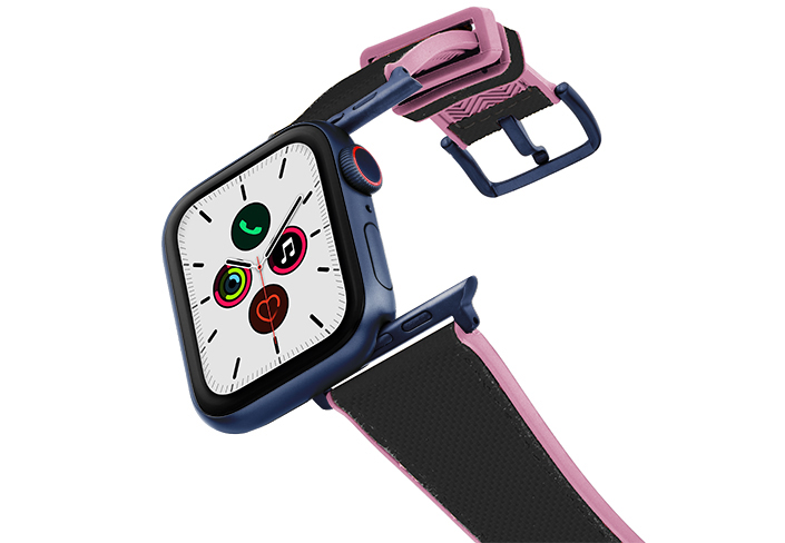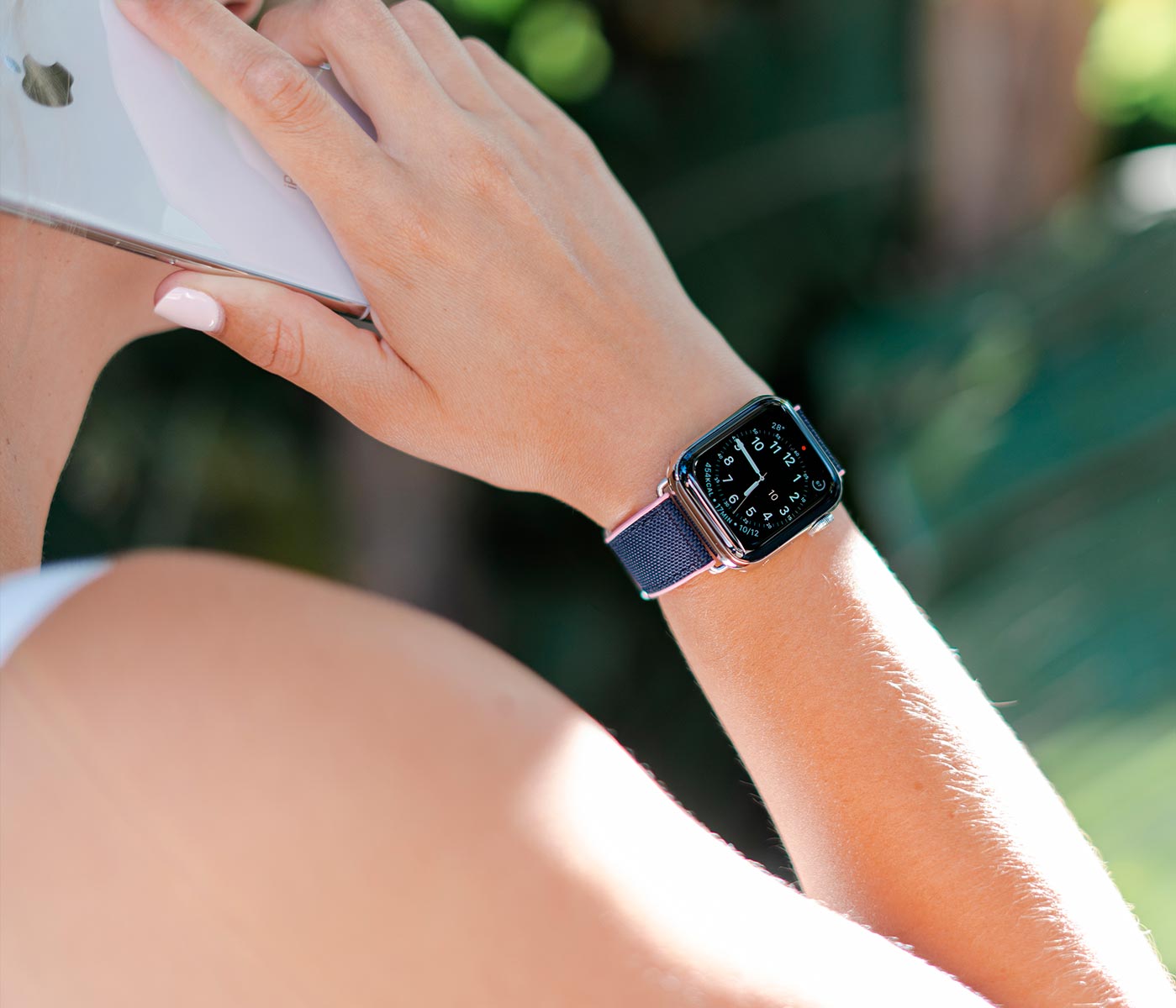Un assaggio delle colorazioni intense delle profondità marine con un tocco di adorabile rosa a contrasto, perfetto per essere indossato sia in occasioni mondane che per un outfit da fitness che non passa inosservato quanto a femminilità. Adatto ad AW series 6 & SE e 5|4|3|2|1 ma solo per casse piccole 38-40mm