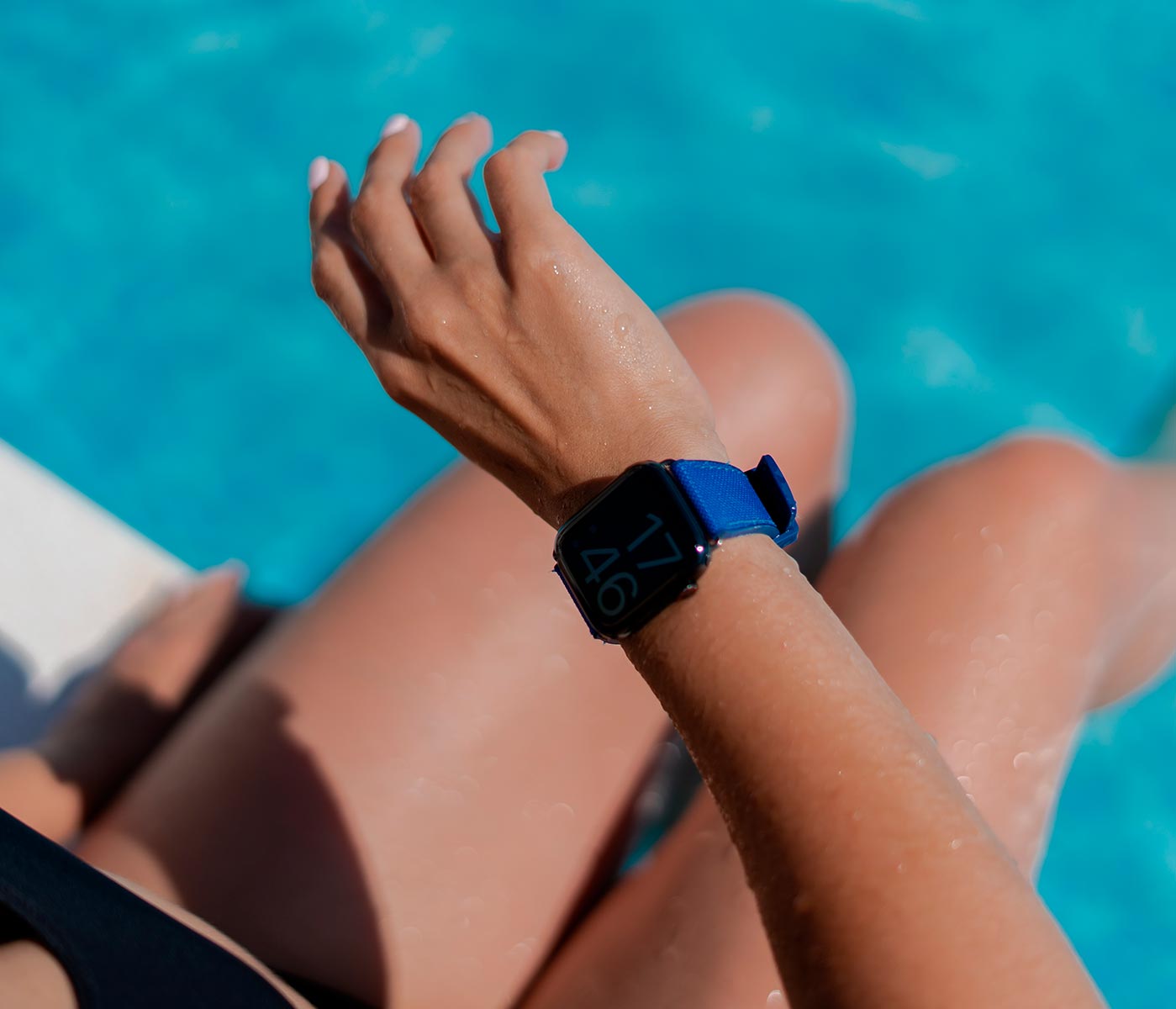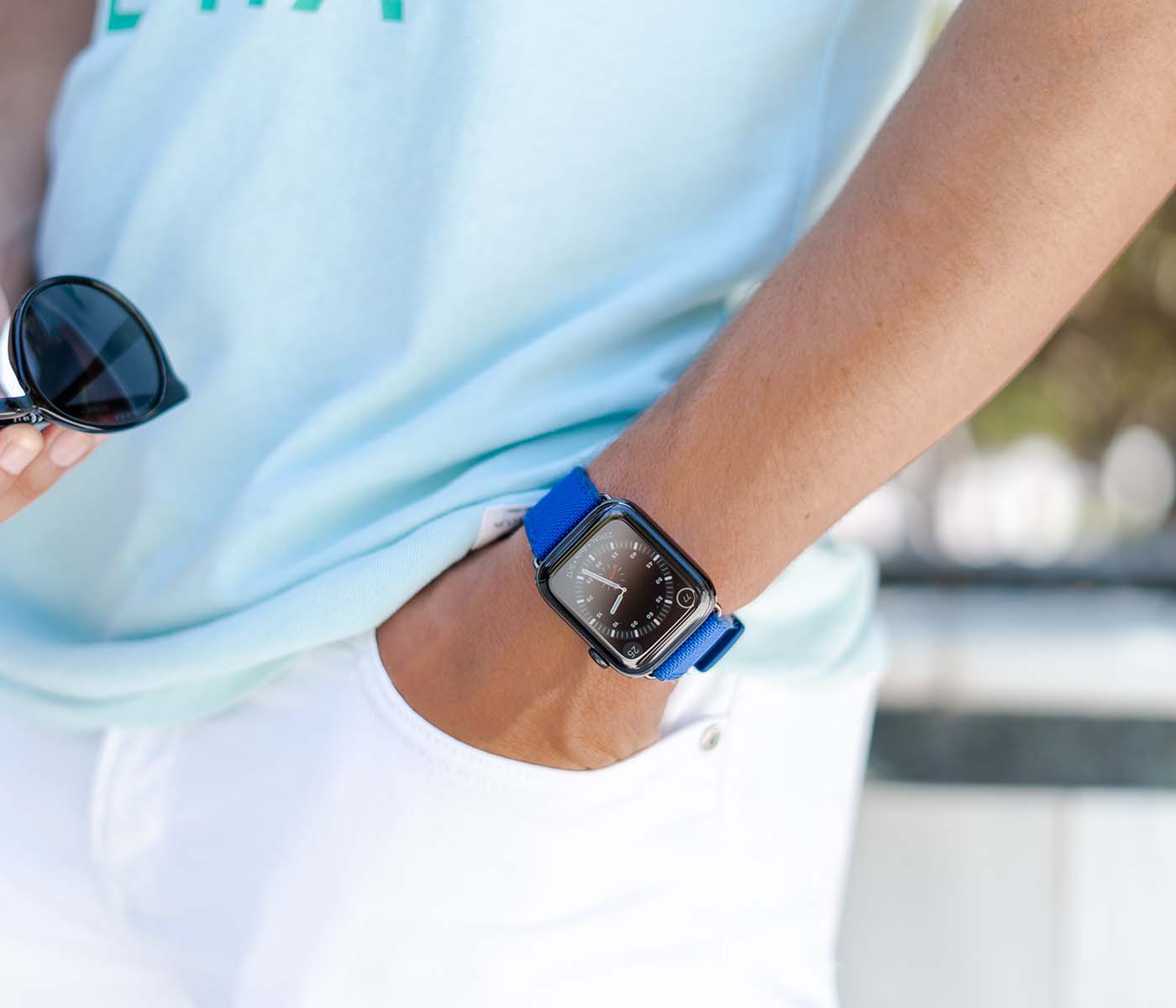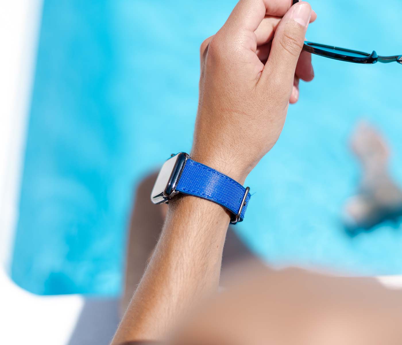 Un blu profondo, elegante e sofisticato che richiama inevitabilmente il colore delle profondità marine e degli abissi inesplorati. Non è un caso, quindi, che questo cinturino in caucciù, curato nei minimi dettagli e completamente rifinito a mano in cotone nella conceria in Italia, sia resistente all’acqua ed adatto all’attività fisica anche subacquea. Disponibile per ogni Apple watch series 5 e 4|3|2|1; interno grigio per le casse 38-40mm mentre della stessa tonalità di blue per la versione in 42-44mm