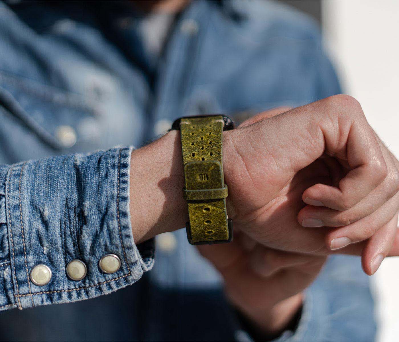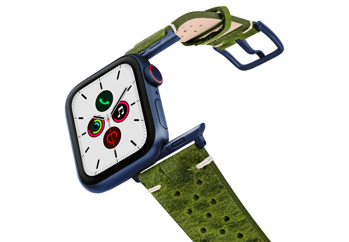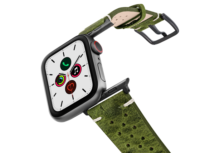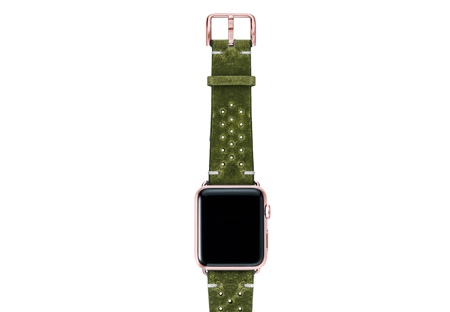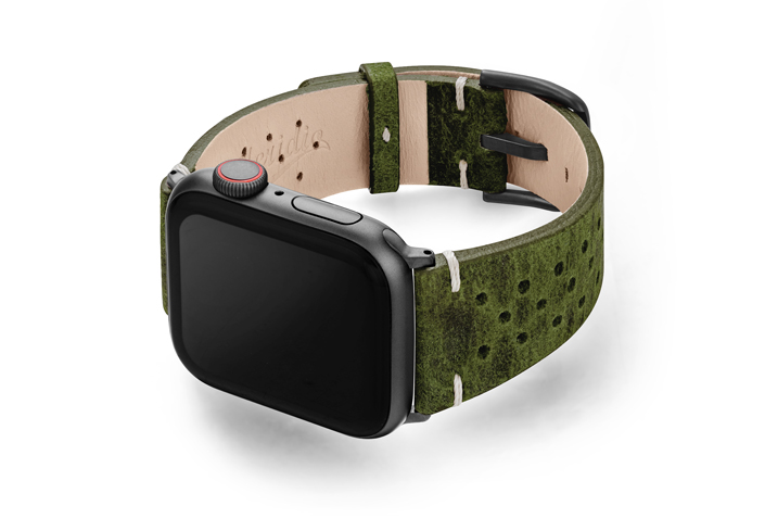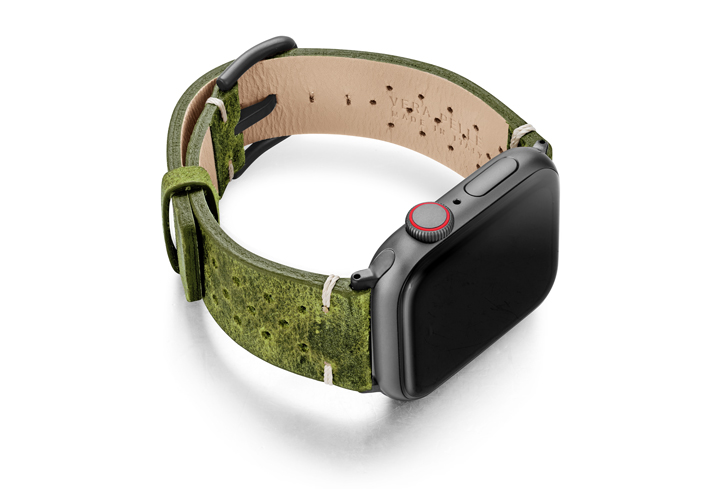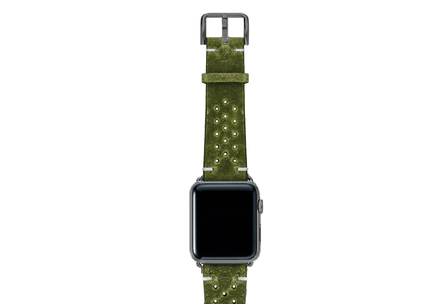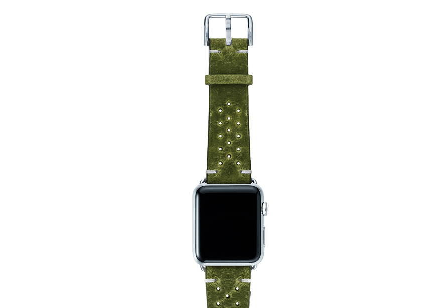 In Italia, il verde è il colore della speranza (Hope) e, il desiderio di Meridio è condividerla con voi soprattutto in tempi cupi come questi dovuti alla pandemia. Regalati un tocco di energia positiva mettendo al polso del tuo AW un cinturino in pelle di vitello invecchiata da un colore unico ed impreziosito dall’aggiunta di 30 fori che ne conferiscono un tocco vintage oltre che garantirne maggiore traspirabilità. Disponibile per casse 44 | 42 mm e compatibile con tutte le versioni dalla nuova serie 6 alle precedenti 5|4|3|2|1