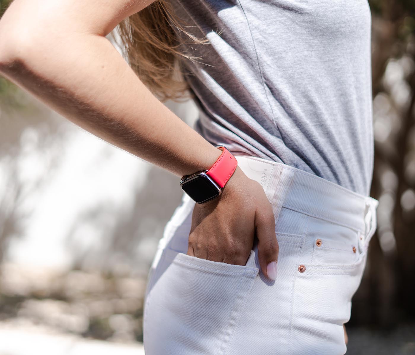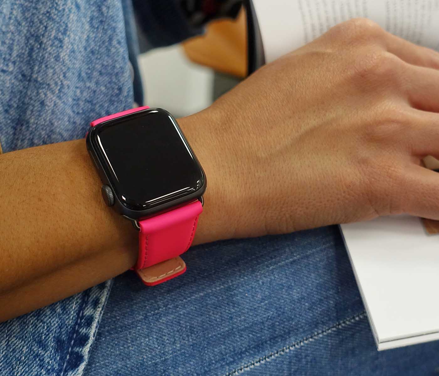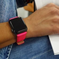 Una pelle rosa fluorescente scelta per esaltare la bellezza del proprio AW serie 6 e precedenti, mettendo in risalto il mood festaiolo e solare. Materiali di pregio come la pelle di vitello e finiture in cotone a tono sono unite da un fattore comune, l’ artigianalità della manodopera 100% made in Italy. Disponibile solo per AW 38 | 40 mm.