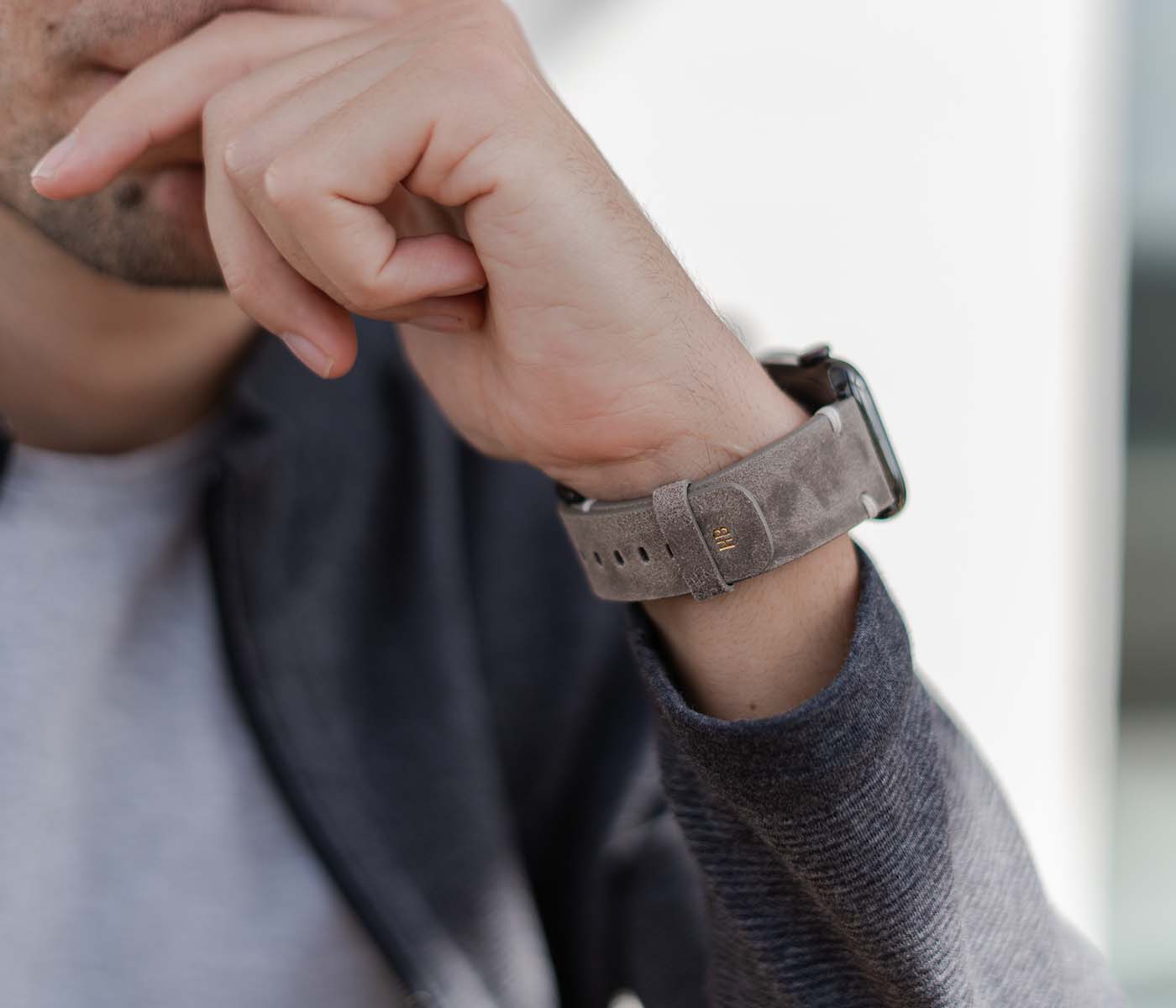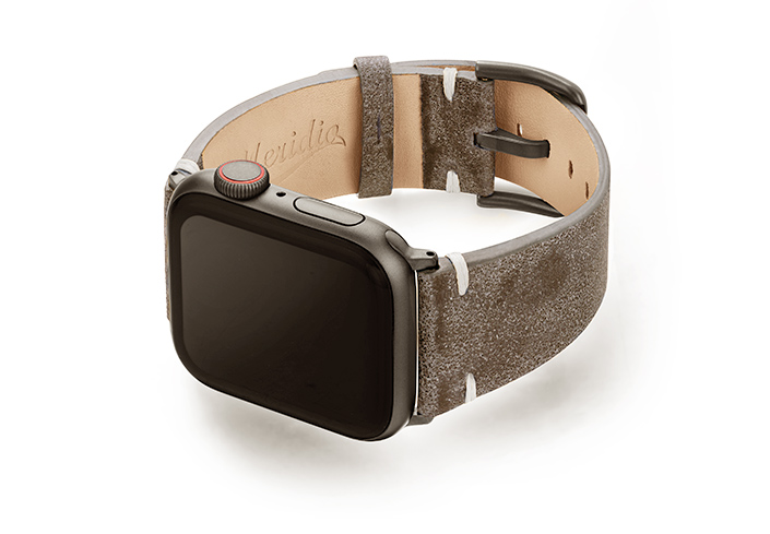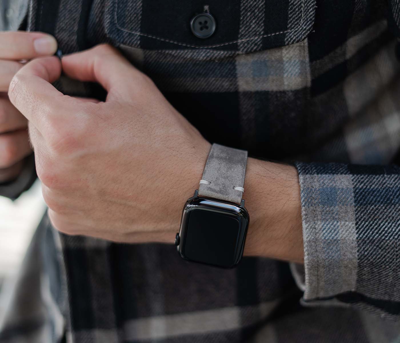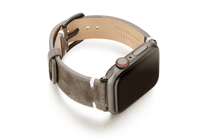 Cinturino vintage in pelle di vitello in una tonalità di grigio chiaro come il colore di pietre modificate dal tempo e dagli agenti atmosferici. Disponibile per AW con cassa 42-44mm per tutte le versioni a partire dalla nuova serie 6 & SE passando per la 5 e finendo alla 1