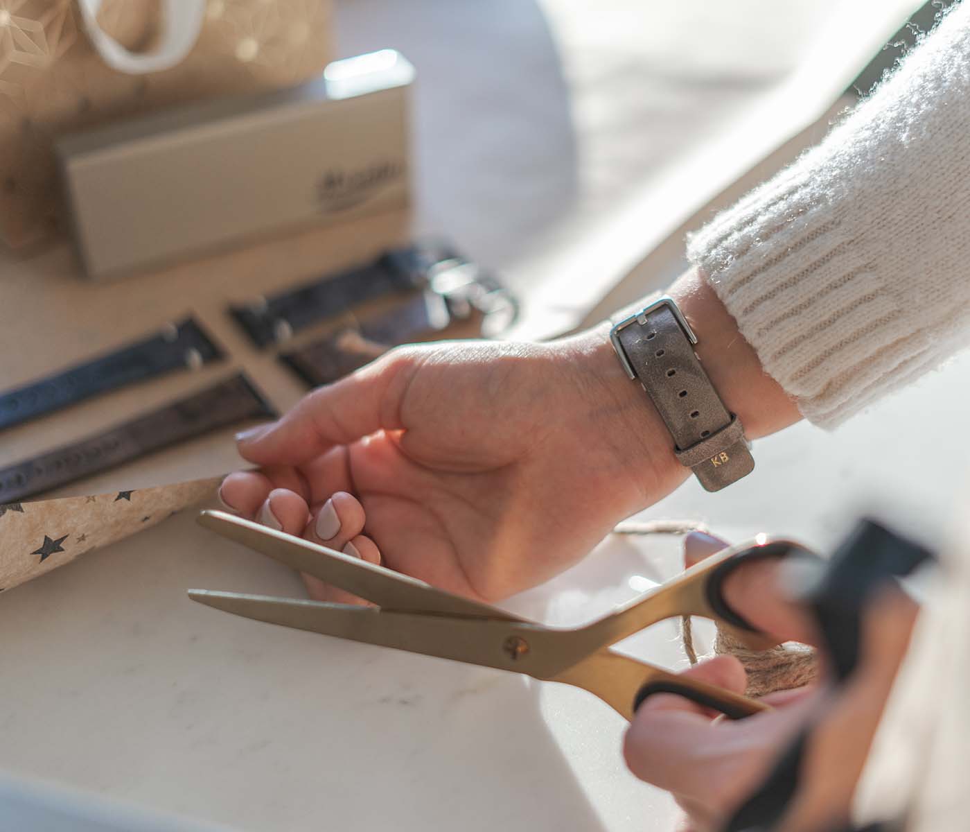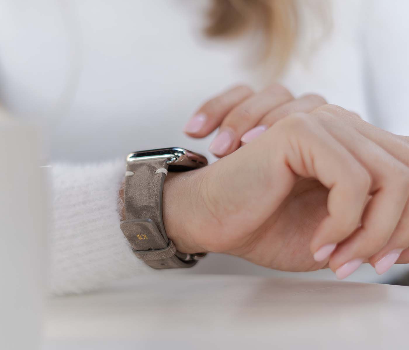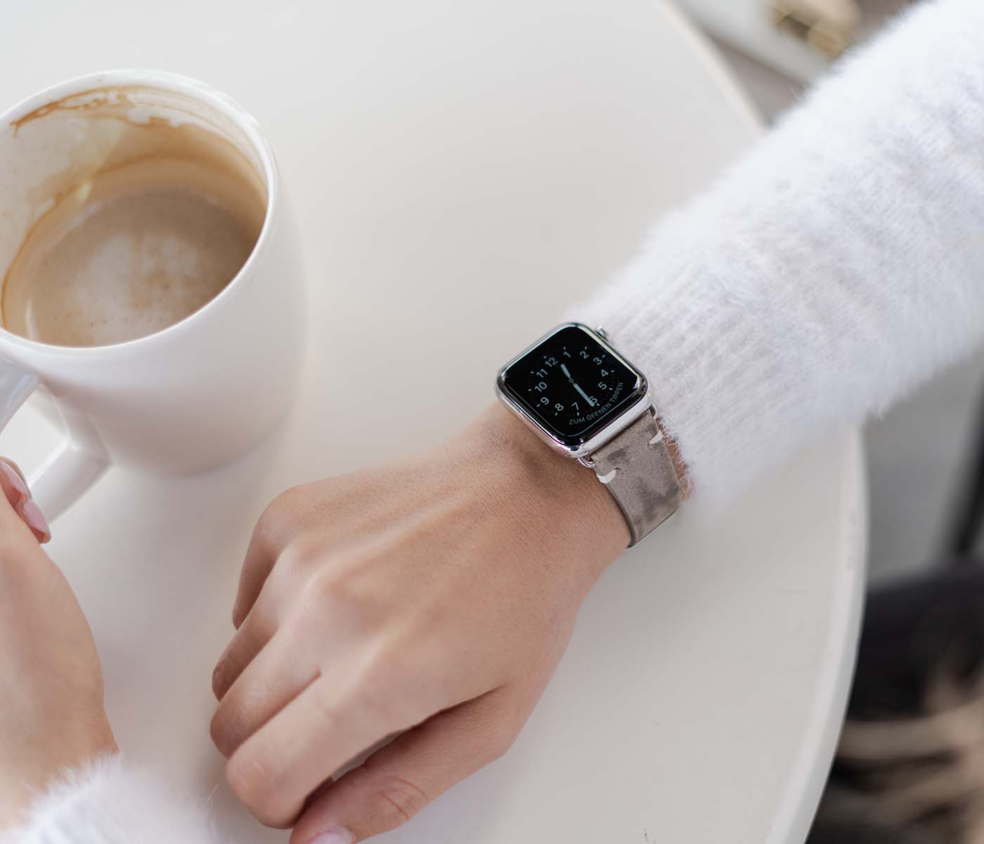 Cinturino vintage in pelle di vitello in una tonalità di grigio chiaro come il colore di pietre modificate dal tempo e dagli agenti atmosferici. Disponibile per AW con cassa 42-44mm per tutte le versioni a partire dalla nuova serie 6 & SE passando per la 5 e finendo alla 1