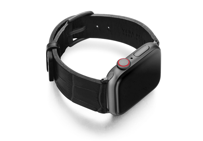 Un cinturino dal forte colore scuro, un nero sempreverde in pelle di vitello stampata. Il color fumo è il dettaglio che fa la differenza. Il processo made in Italy conferisce al cinturino quella morbidezza unica. Indossalo e dimentica di averlo al polso. È disponibile per Apple watch serie 6 e 5|4|3|2|1. Disponibile per casse 38|40 & 42|44 mm