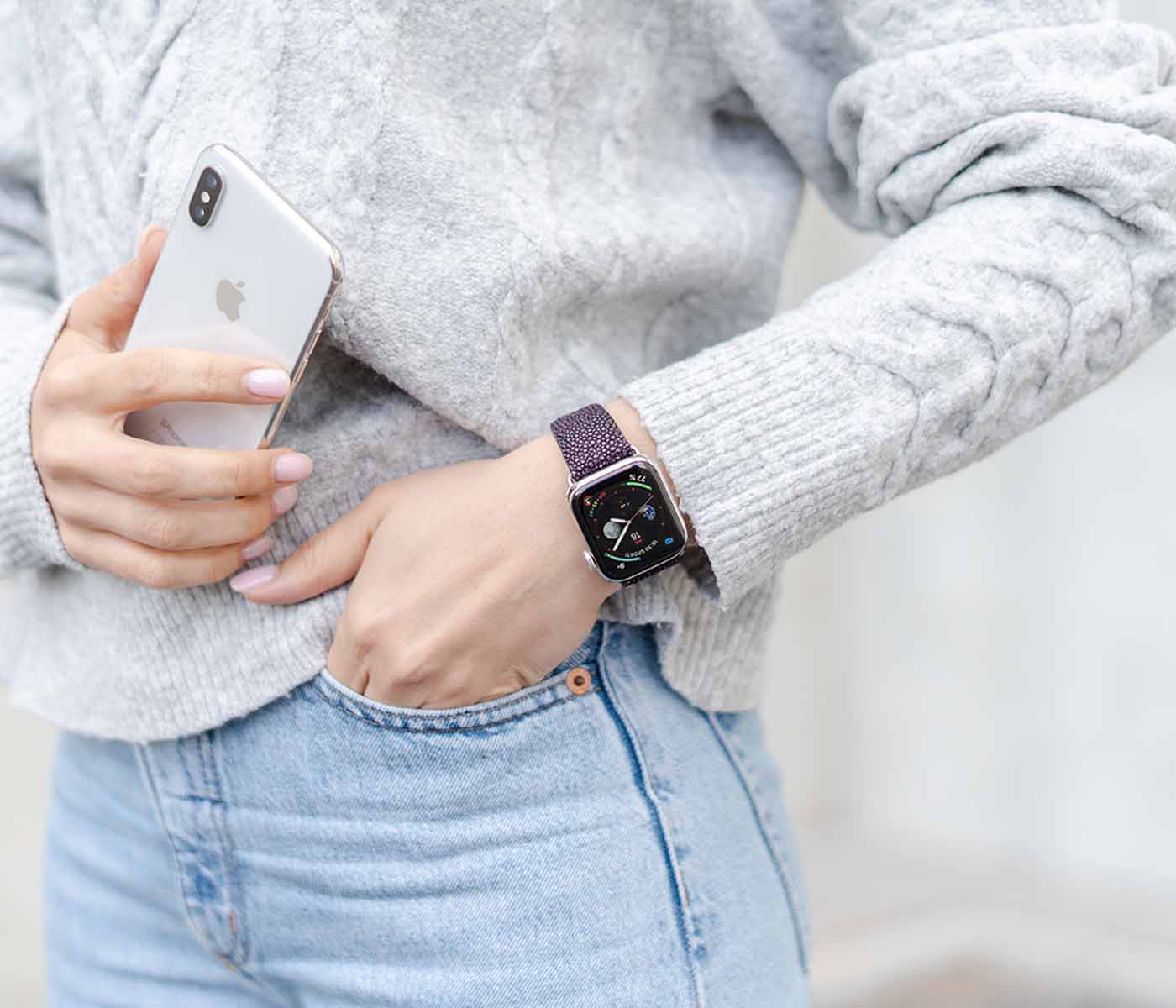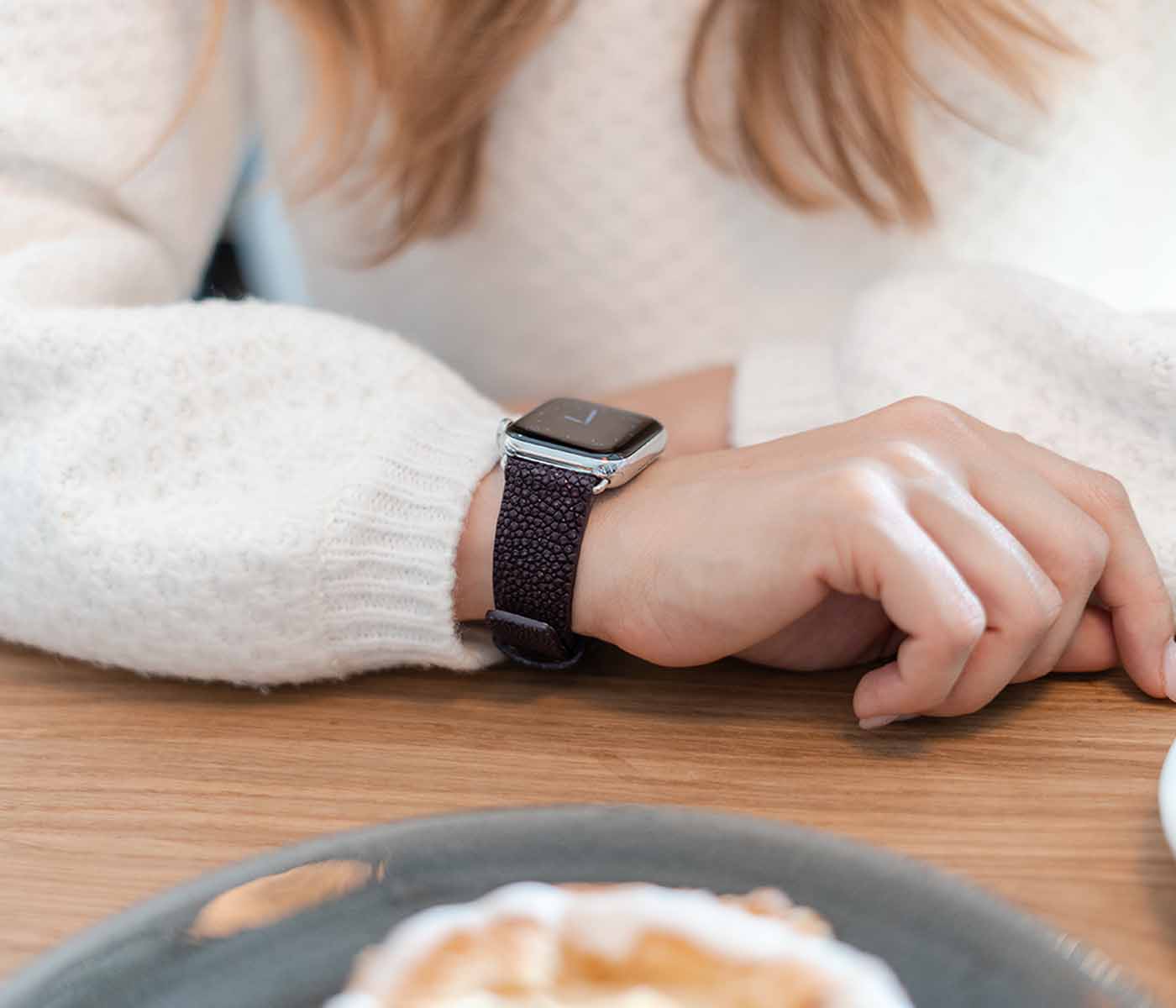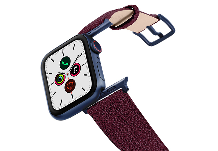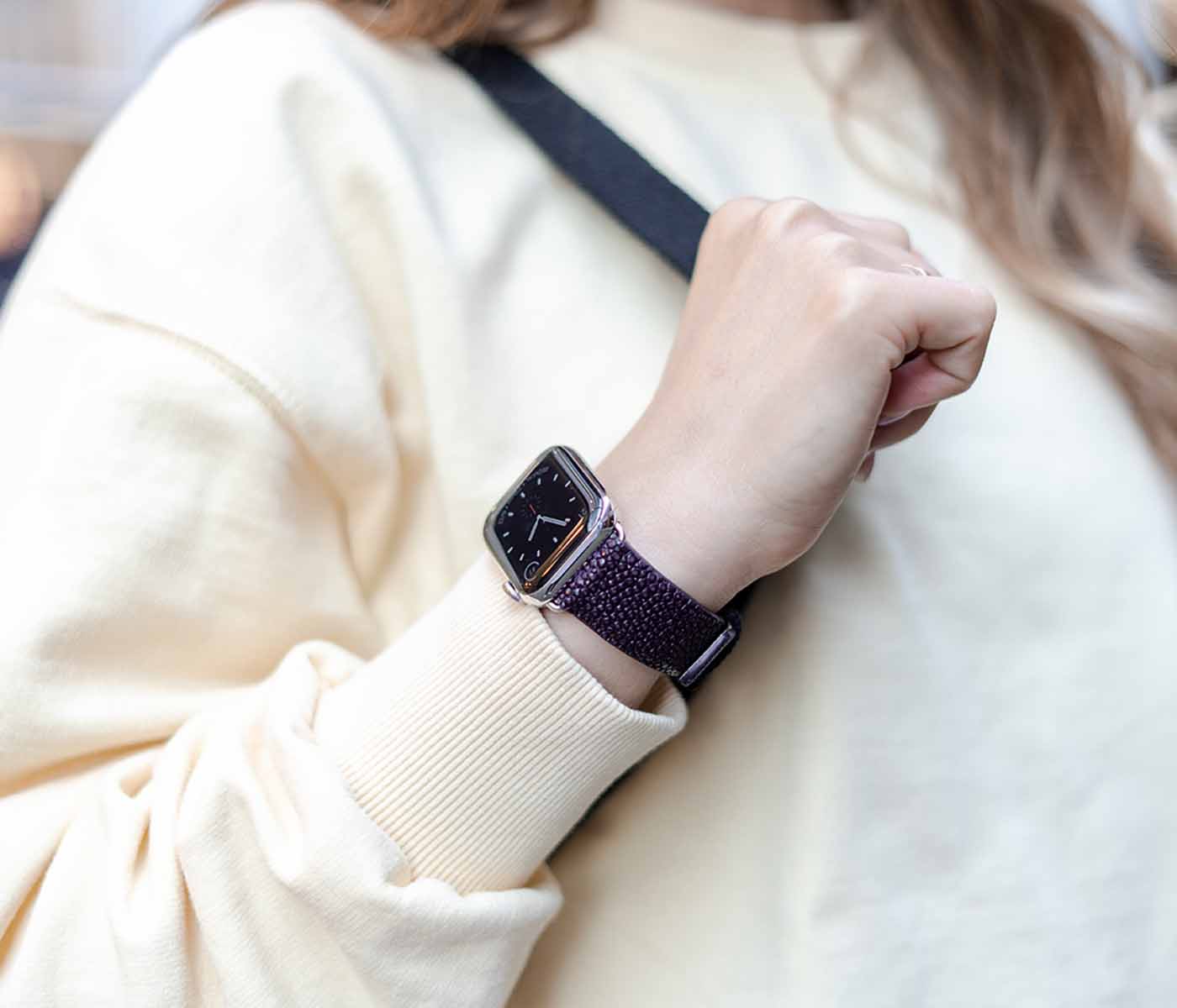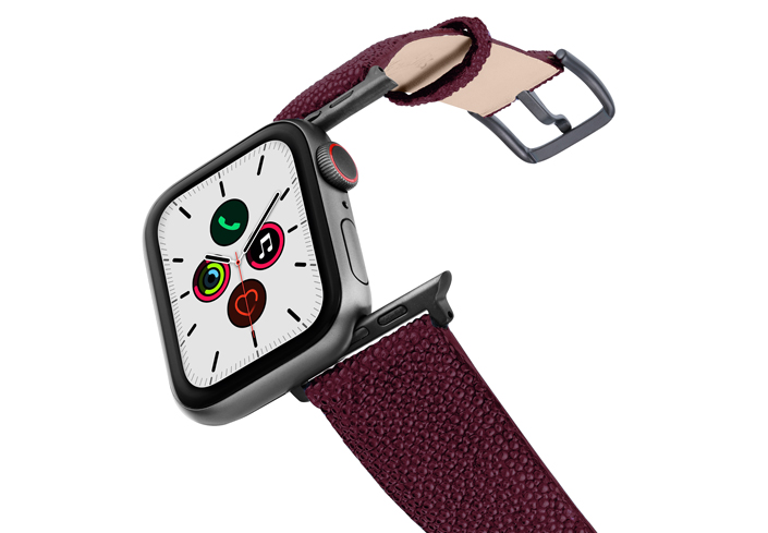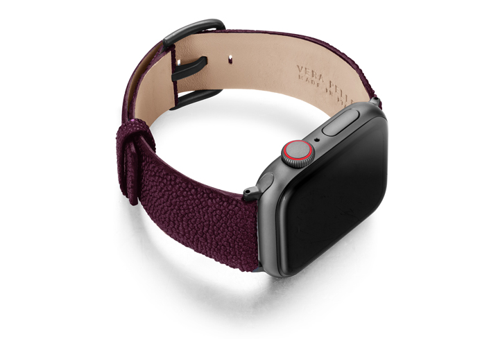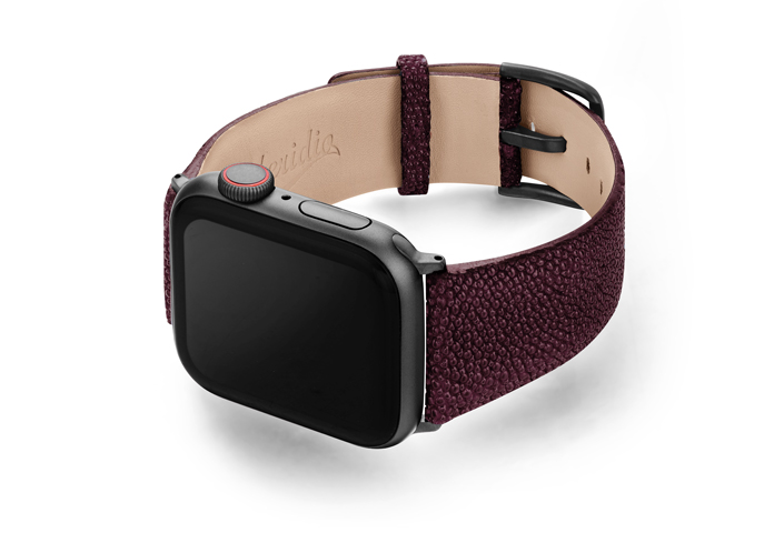 Purple Rain, il cinturino viola per il nuovo Apple Watch Series 6 e 5|4|3|2|1 in pelle galuchat con design Made in Italy: stile impeccabilmente peccaminoso. Solo per casse 38-40 mm