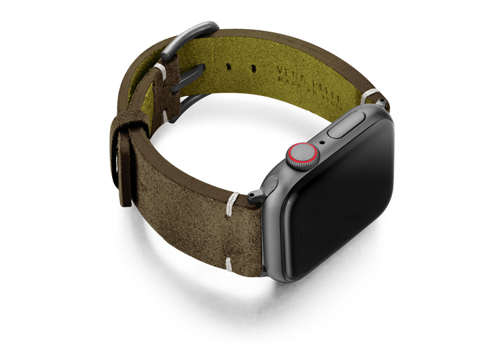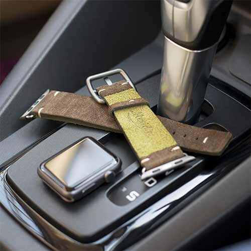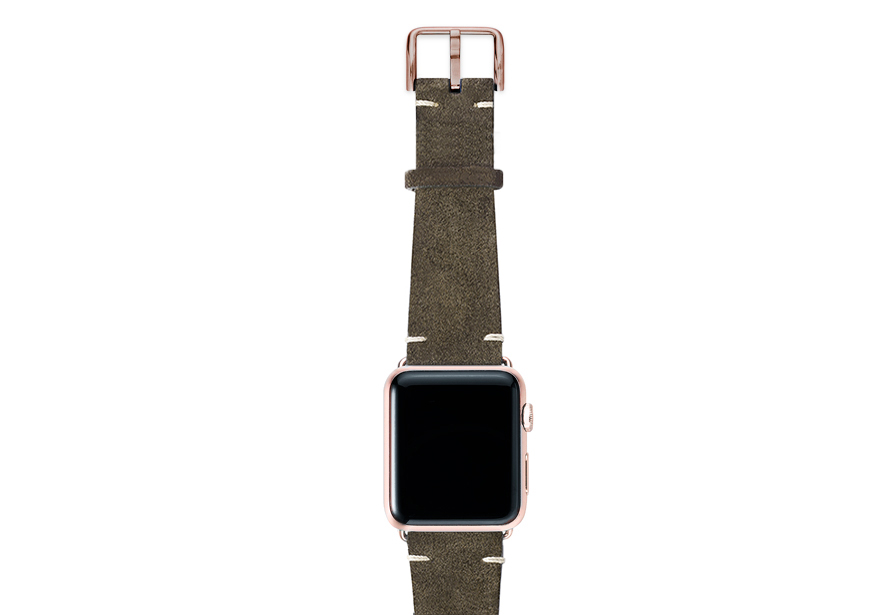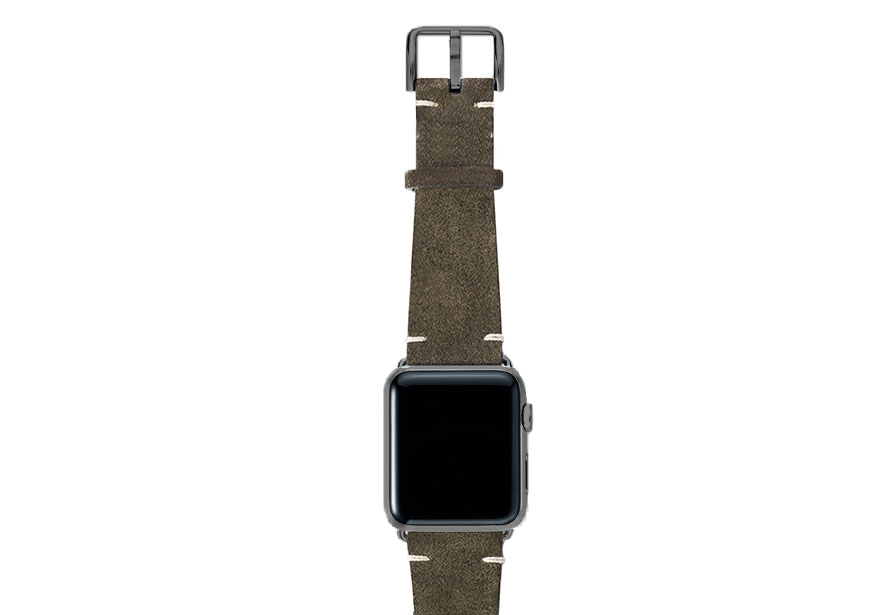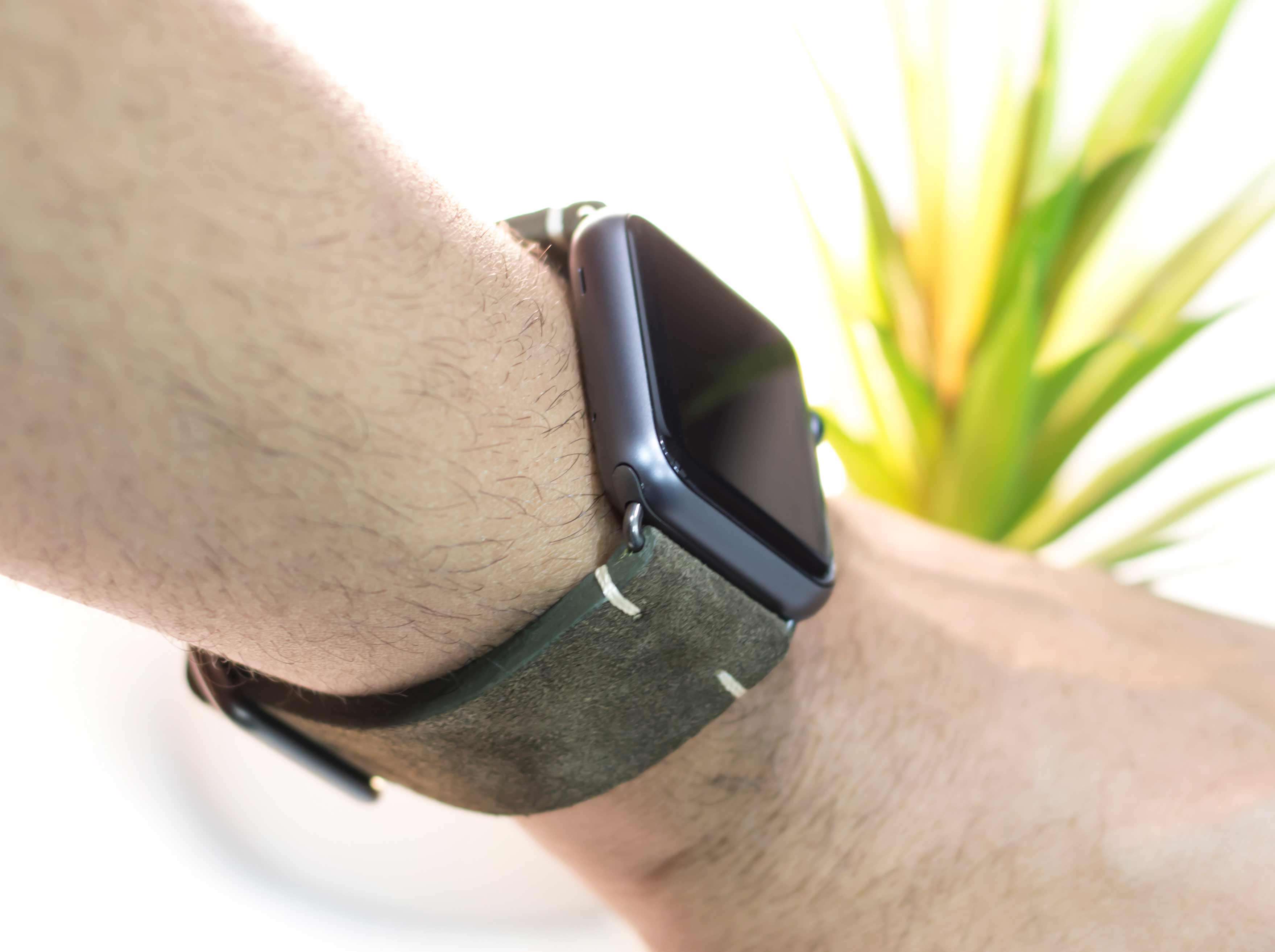 Cinturino verde scamosciato per Apple watch 100% Made in Italy. Le tonalità di colore presenti nel cinturino evocano grandi distese di campi, trasmettendo un senso di pacifica libertà. Compatibile con Apple watch series 6 & SE e 5|4|3|2|1. Solo per casse 42-44 mm