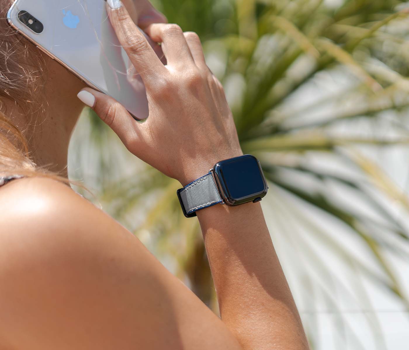 Una tonalità di grigio perfetta in combinazione con qualsiasi look: per alleggerire un outfit dai colori accesi o per conferire incisività ad un look total black o total white. Grazie al caucciù ed al poliestere, questo cinturino per Apple Watch risulta saldo e sicuro al polso oltre ad essere completamente resistente all’acqua. Disponibile per la nuova serie 6 & SE e le precedenti 5|4|3|2|1. Solo 42-44mm