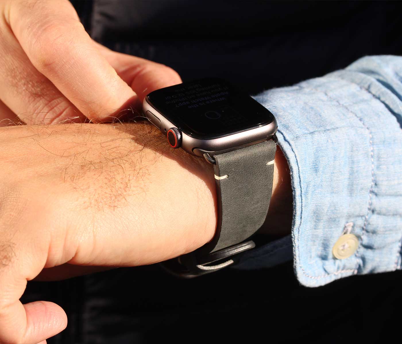 Un cinturino per Apple Watch Serie 6 & SE e 5|4|3|2| 1 davvero unico: una volta indossato, svela infinite sfumature di grigio, bianco siderale e venature di blu con grigio. Touchstone by Meridio è perfetto per chi desidera avere un accessorio che si modella sul proprio polso e regala un intenso allure vintage. Disponibile per 38-40mm e 42|44 mm