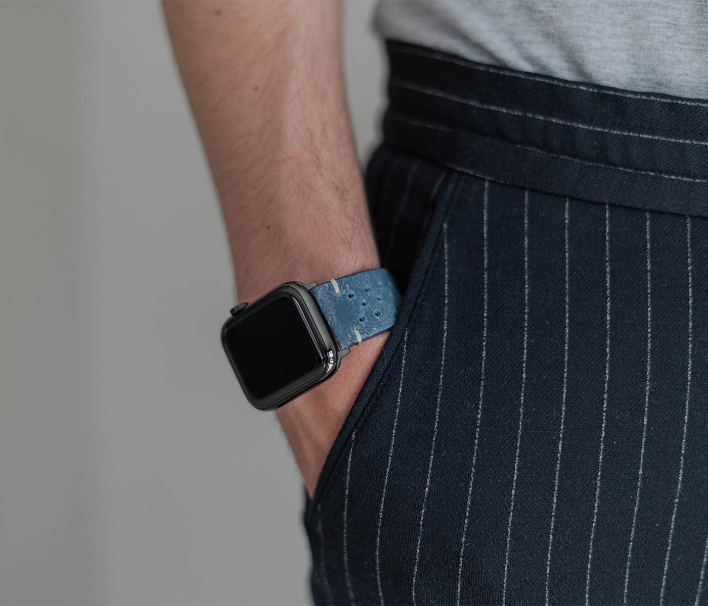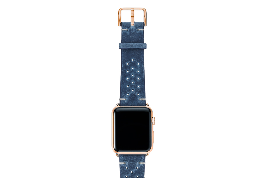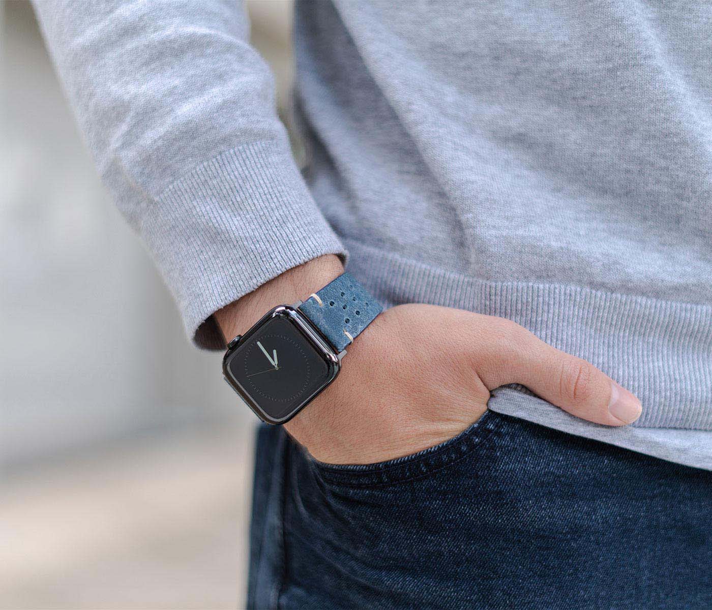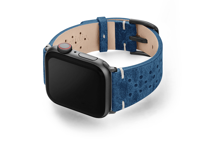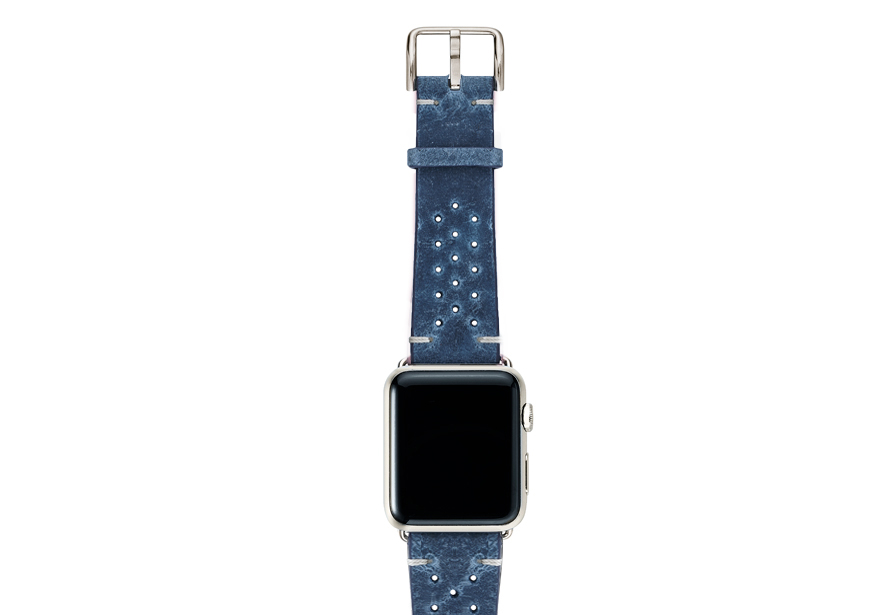 During hard times no aggressiveness is needed, just be patient and Breathe. Everything is going to be all right with this astonishing oxigen blue calf leather band that will enrich your Apple Watch. Breathability ensured with thirty handmade slots carefully inserted by our artisans. Available only for 42 | 44, it works with new series 6 & SE and previous 5|4|3|2|1