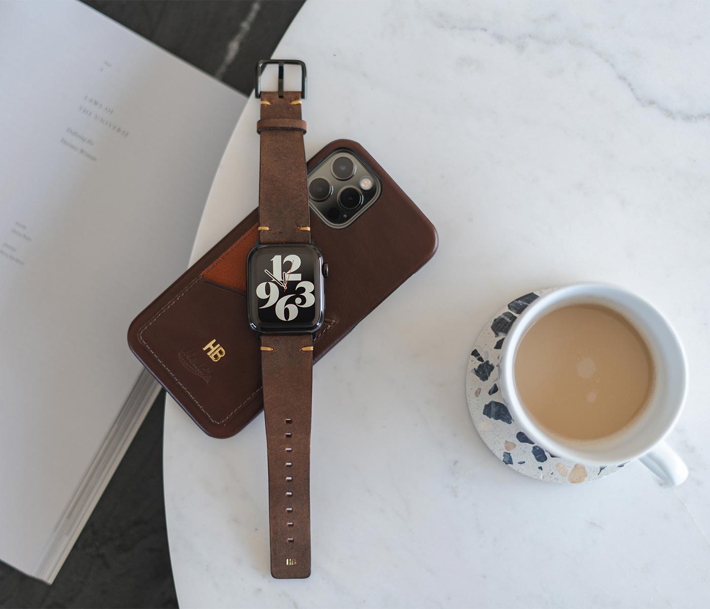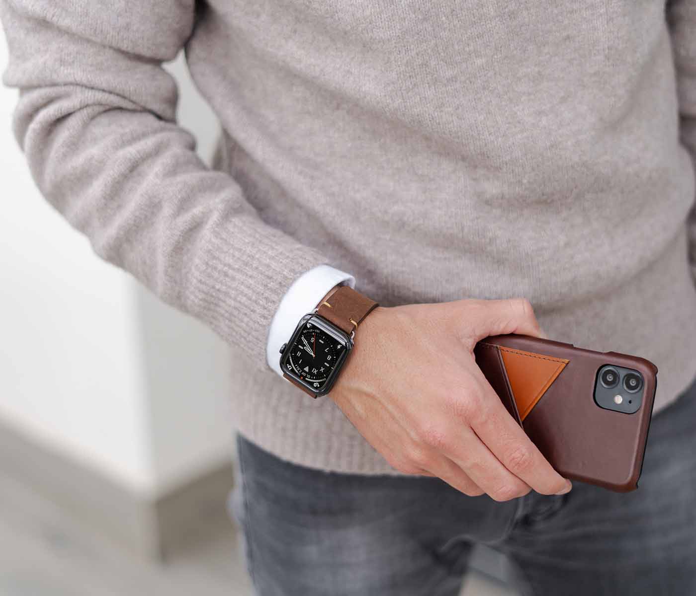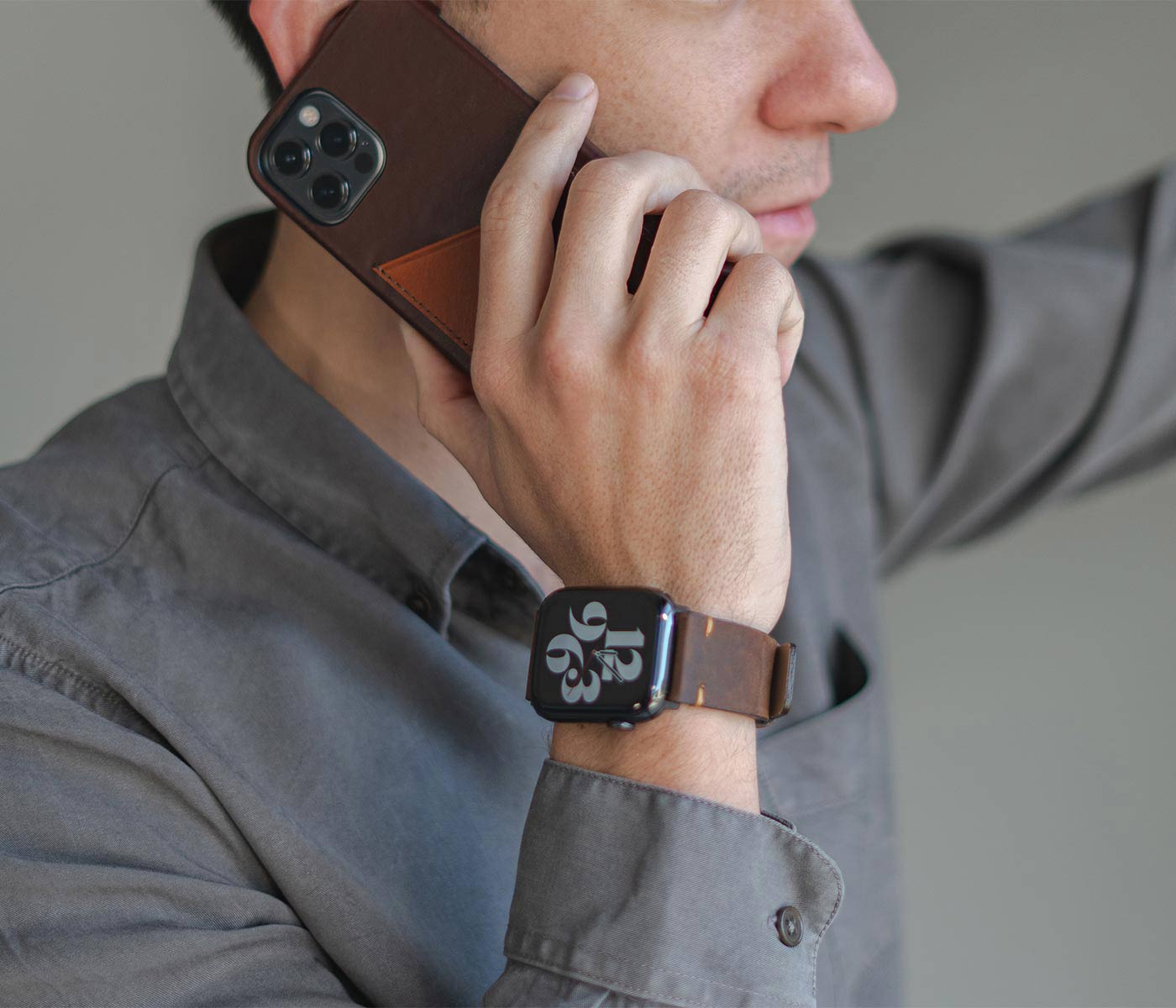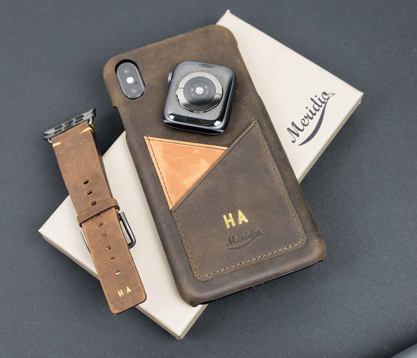 A perfect combination for passionate about technology who can’t resist the charm of vintage made in Italy. Leather case and strap suitable both Iphone and Apple watch with high quality of leather and sophisticated finishes and details.The best reply to your search for luxury and elegance