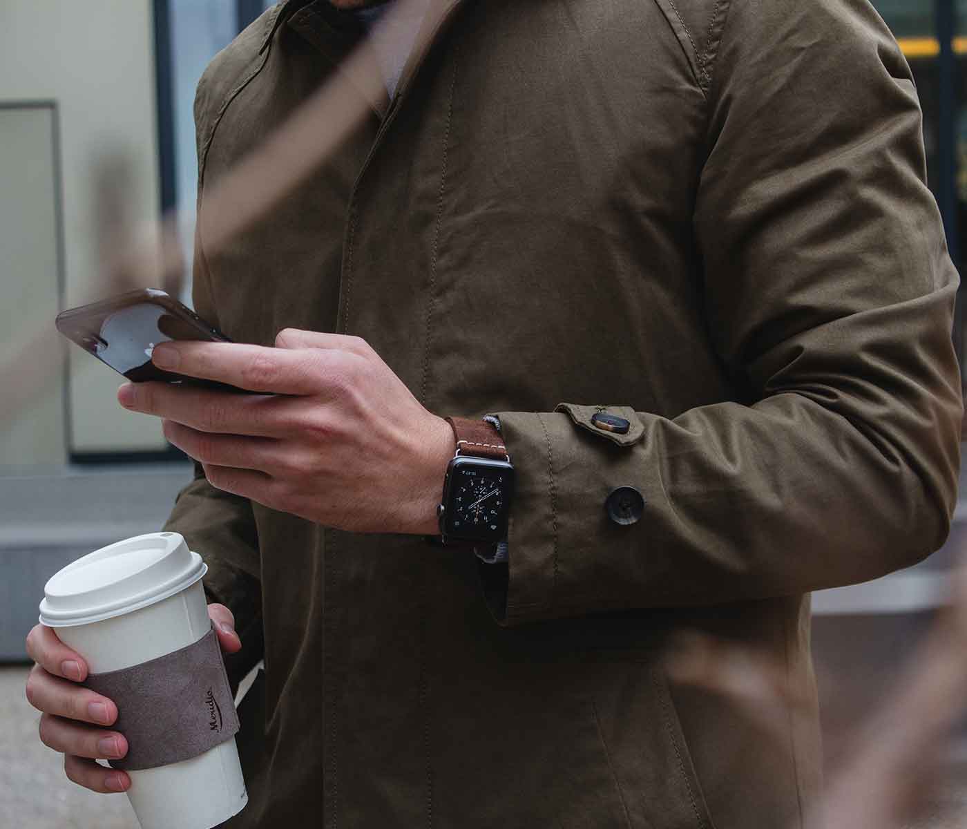 Dark as the tastiest chocolate and the most fragrant coffee bean, this leather combo is the ideal Christmas present for a man who loves the traditions and warm intimacy of a place full of people he loves. Chocolate cottage strap for Apple watch Series 5 and 4|3| 2|1, with an intense brown color that makes it suitable for any kind of outfit. Available only 42-44 mm and the cup holder from beautiful and sporty cocoa brown