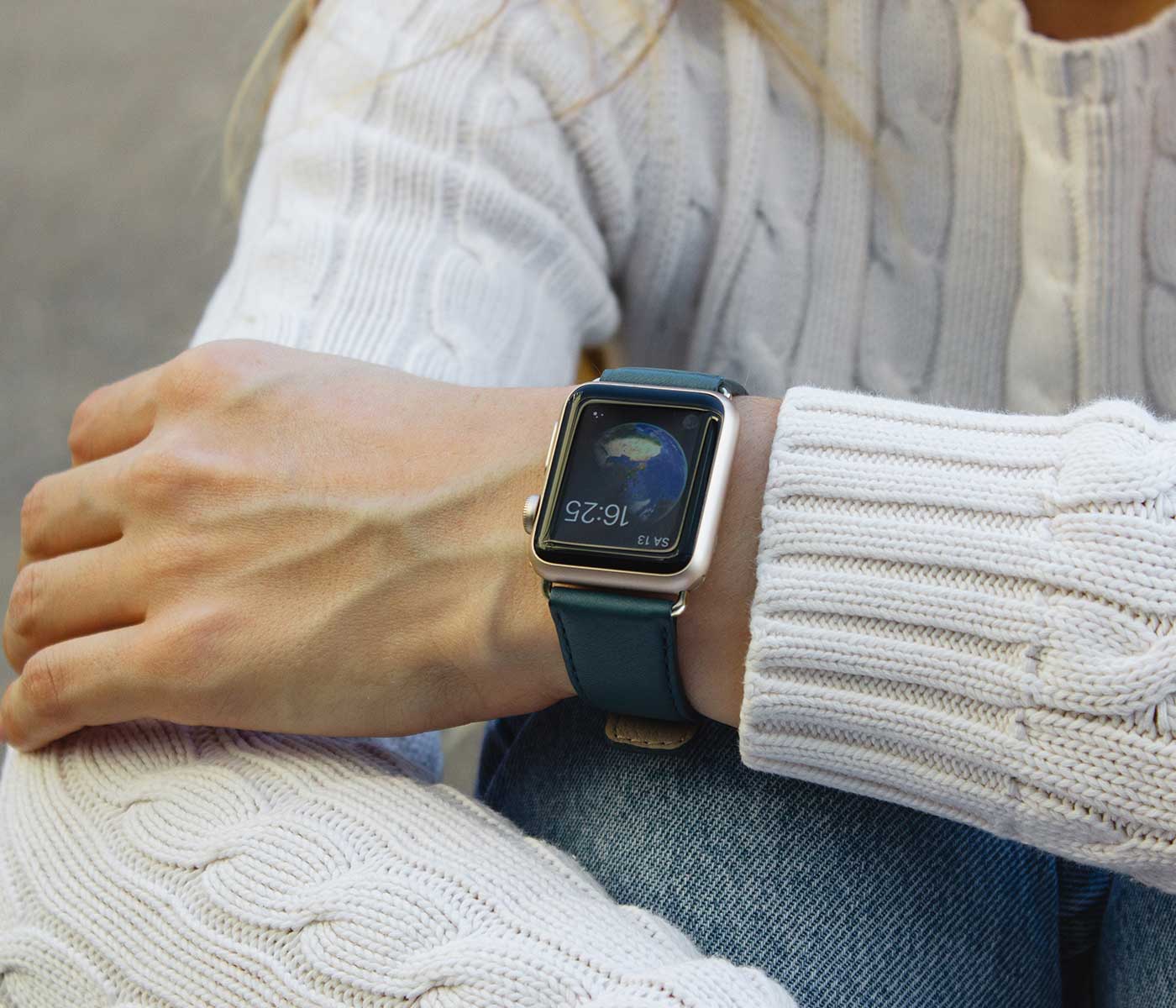 The extremely soft and supple nappa leather is pleasantly highlighted by the appealing medium-tone blue color that greatly enhances the dashing and daring character of this superior strap quality for Apple Watch series 6 & SE and 5|4|3|2|1 . Denim is practical yet timelessly stylish featuring a great sense of comfort and esthetic pleasure. It fits 38-40 | 42-44 mm
