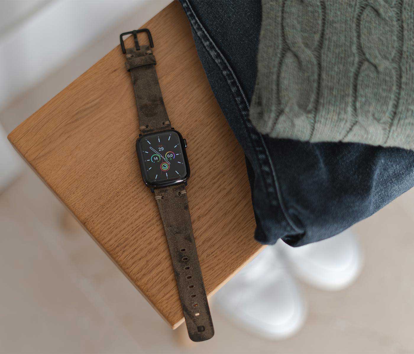 Why choose between the gray or green colors when you can have both of them beautifully mixed in the same Apple Watch Band by Meridio. The vintage effect of the Ancient collection matches perfectly this special color which will remind you of sitting in the shadow of a beautiful olive tree. Yet, the most special detail about Green Slate is the quality of the Italian calf leather and the handmade artisan work. Available for 42-44 mm and Series 6 & SE, as well as the previous ones 5, 4,3,2,1