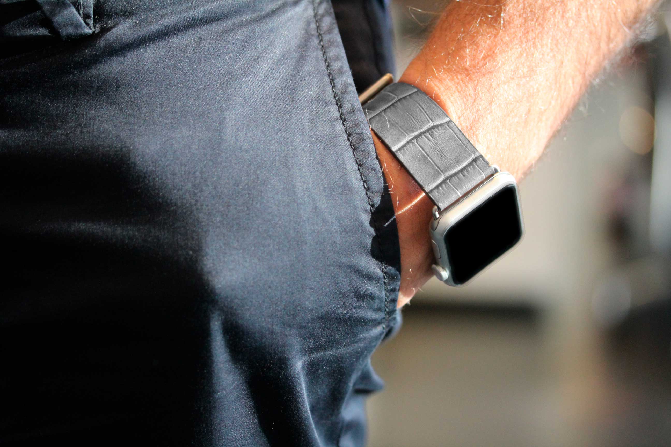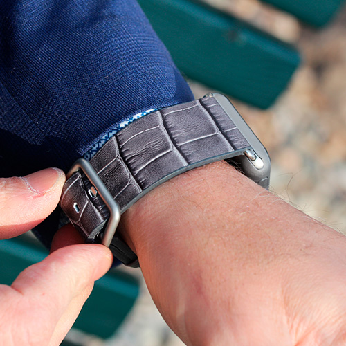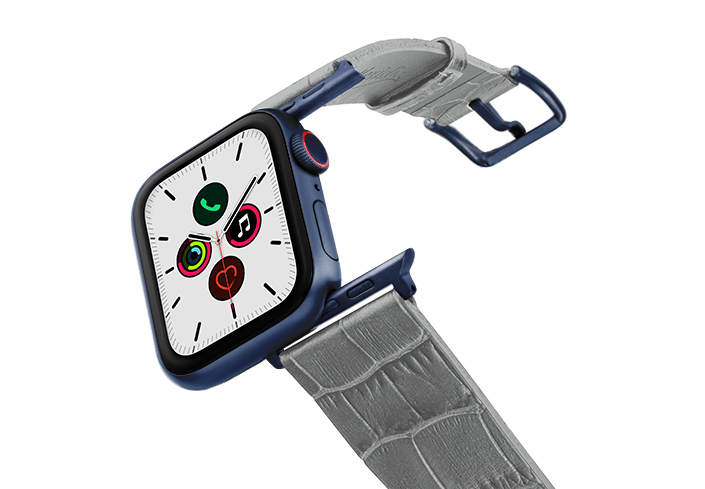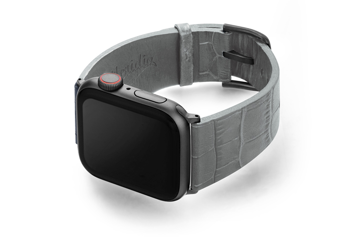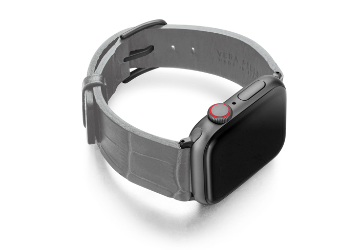 The grey vein matt on the printed calf leather gives intensity to the apple watch band making unique and special each piece. Intercostal straps are the incomparable accessories for your urban-chic style. Start thinking about your daily working outfit. Available for all Apple watch Series 6 & SE and 5|4|3|2|1. It fits 42|44 mm as AW case