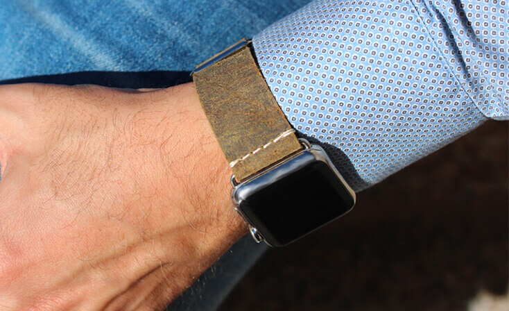 Simple and tough, Khaki Sun’s military tan color greatly enhances the vintage character of this strap and accentuates the beauty of your Apple Watch series 6 & SE and 5|4|3|2|1. You will feel and look fantastic with this stand out leather strap on your wrist, especially if you are looking for an absolute masculine approach. It fits only AW case size 42-44 mm