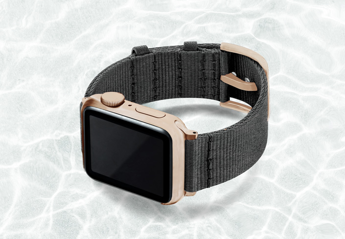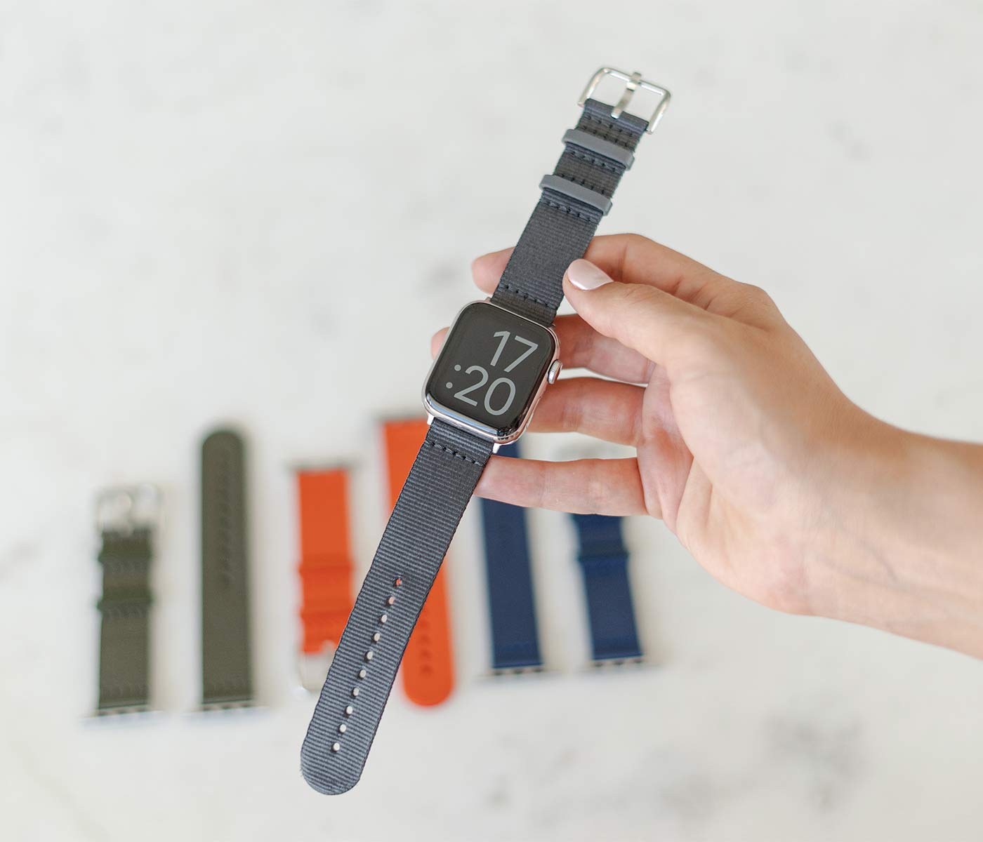 The pacific stone apple watch woven band is one of seven bands part of the tide collection realized with recycled ocean plastic. This grey tone waterproof strap is an all-day everyday style, also since saving the plant is always in style! The high-quality wristband is comfortable while being worn yet durable and has stunning leather loops. It’s compatible with Apple watch new series 6 and previous ones and easily interchangeable with all adapters.